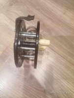 Доброго вечера.Доброго времени суток. Может кто-нибудь знает, что за катушка? Никаких опознавательных знаков на ней нет. Шпуля цельнометаллическая. Найдена на днях, у соседа по гаражам. Не уверен, что ручка оригинальная, но впечатляет ее размер.