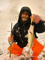Настоящий рыбак!Решил вчера сходить после работы на МР. Пару коробок с воблерами в рюкзак и на речку. За три часа ни поклевки но промок хорошо. То снег, то дождь. Итог ОП.
