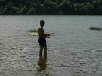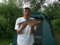 Чуть выше от лагеря,была песчанная коса,куда регулярно выходил окунь и жерех.В одно утро мне поймался там жерешок на полкило.