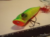 Да просто! Вместо воблера, поппер. Не пробовал, но надо попробовать! Во-первых, данная конструкция поппера позволяет непрерывную проводку. Во-вторых вес: 35,5 гр. В третьих, интересно!