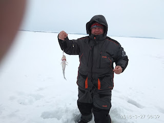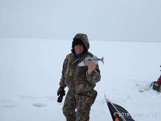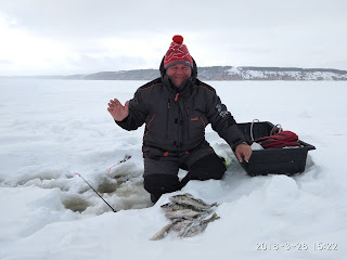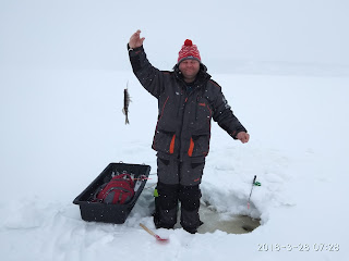 Погода менялась постоянно, то метель со снегом, лунки заметало мгновенно, то солнце такое, что морда лица обуглилась, то мороз ниже -10, в общем красота!