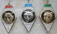 Знак могли восстанавливать, а эмалей нужного цвета не оказалось...Республиканские общества охотников и рыболовов: